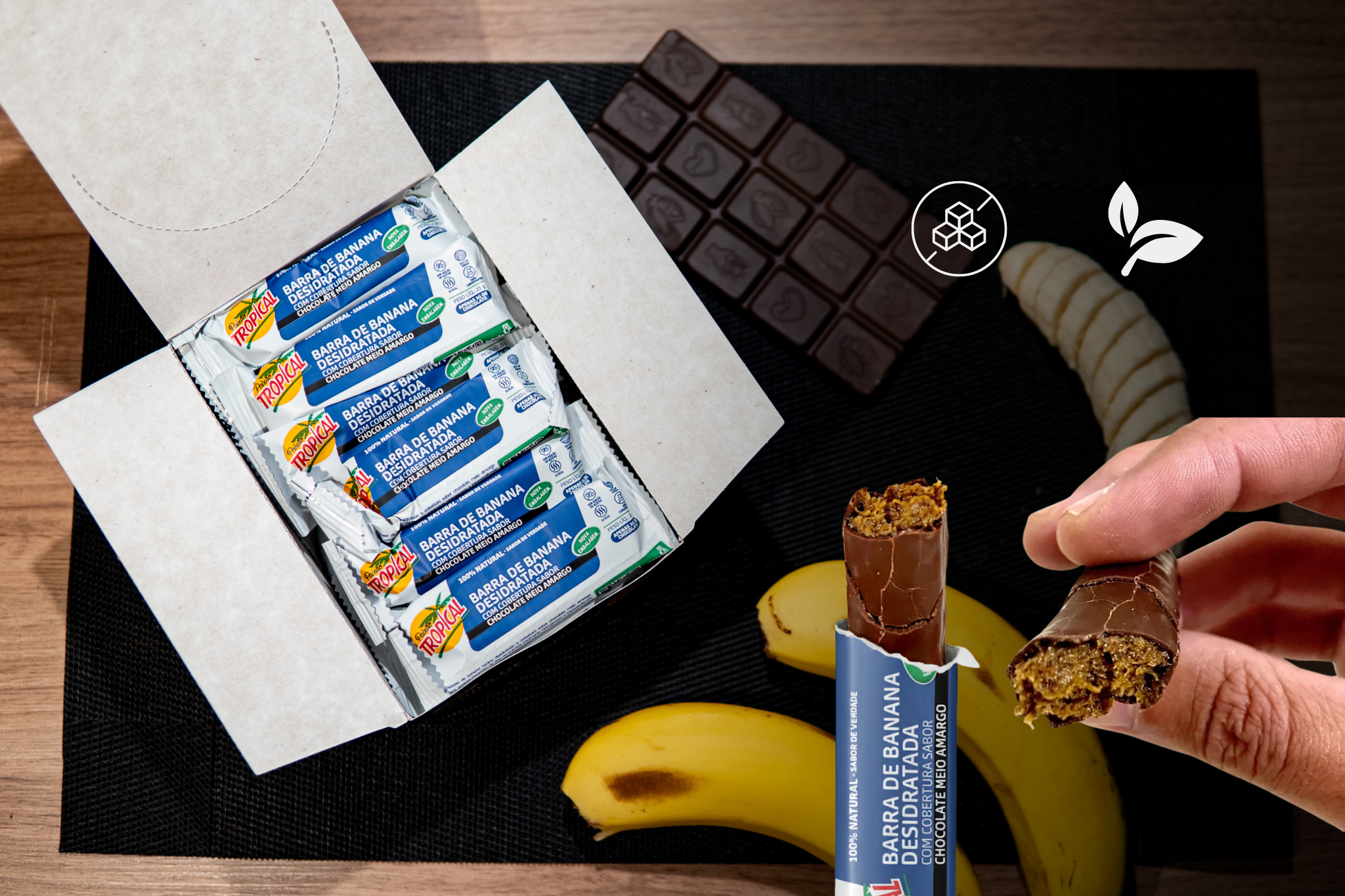 Criada para quem não abre mão do sabor na rotina saudável. Uma barrinha de fruta de verdade, que oferece energia e mata a fome com ingredientes que você conhece e ama, e um toque especial de chocolate para deixar o dia mais gostoso e sem culpa.
